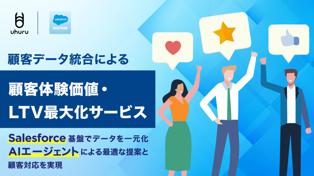 ウフルはこうした課題に対し、Salesforceを活用したCRMおよびマーケティング基盤の構築・運用支援で培った知見と実績を活かし、顧客データ統合とAIエージェントにより顧客対応とマーケティングを高度化する「顧客体験価値・LTV最大化サービス」の提供を開始しました。