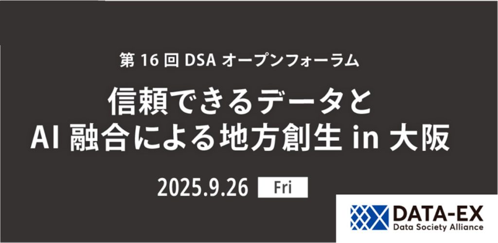 本フォーラムは、一般社団法人データ社会推進協議会(DSA)が主催し、地域データ連携基盤の構築やAIとの融合による地方創生の可能性について議論する場です。自治体や企業による最新の取り組みが紹介されるとともに、スタートアップ事業の事例も交えながら、今後の地域社会におけるデータ活用の展望が共有されます。