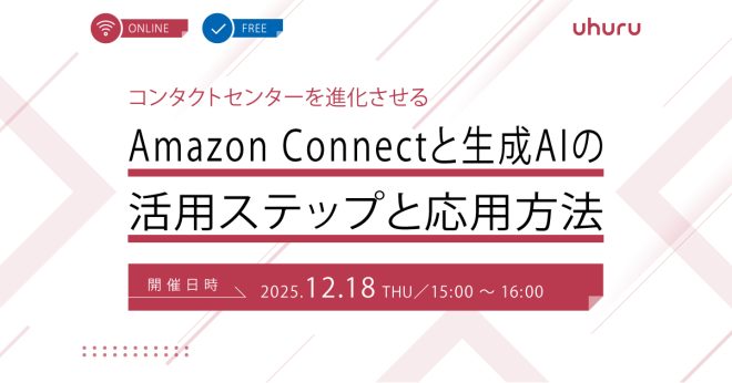 本ウェビナーでは、Amazon Connect の最新進化から、生成AIを組み合わせた具体的な支援・自動化の方法までを、AWSとウフルの2名の登壇者が分かりやすく解説します。