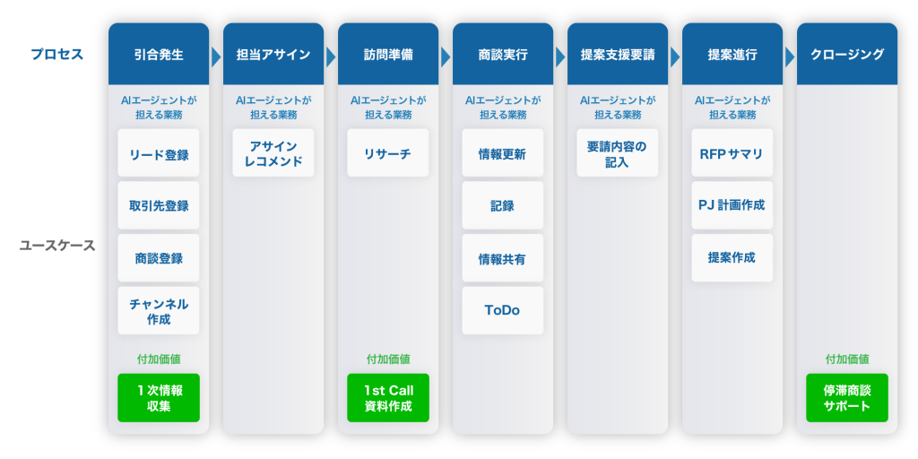 今後は、リード対応や商談管理、進捗報告や分析など、各工程に応じたAIエージェントの設計・構築を進めるほか、営業領域に限らず、開発、カスタマーサービス、マーケティング、コーポレート部門などへも適用範囲を広げ、組織全体の業務プロセスにおける展開も進めてまいります。