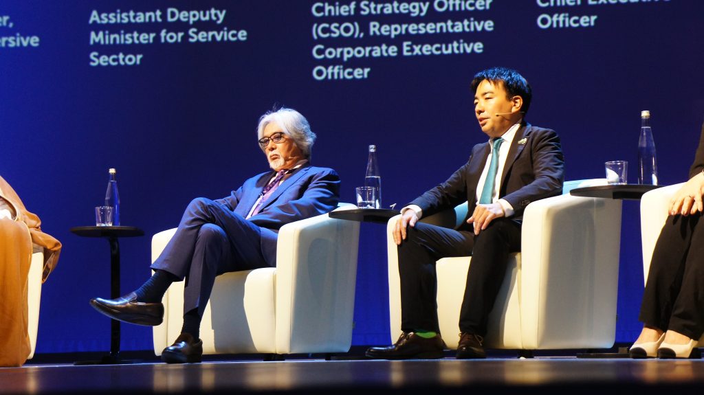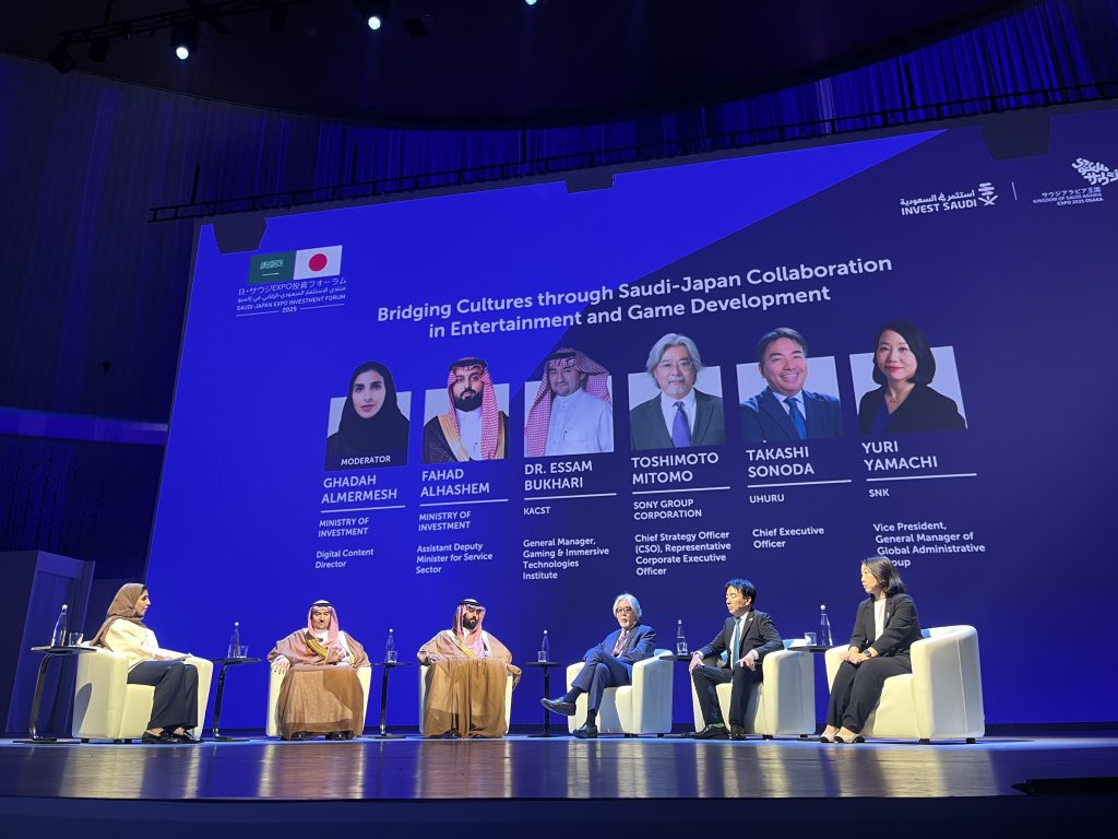 園田は、ソニーグループ株式会社 代表執行役CSO 御供氏と共に登壇し、日本とサウジアラビアにおけるエンターテインメント領域での新たな連携の可能性について語りました。また、これまでに国内で展開してきたエンターテインメントやスポーツ領域での支援実績をもとに、両国の文化交流をさらに推進するための取り組みについて意見を交わしました。
